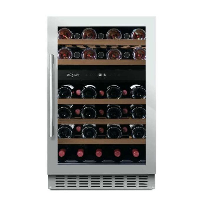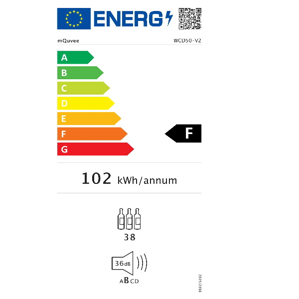 WineCave WCD50S Ugradbeni - podpultni hladnjak za vino Inox okvir vrata Kompresorsko hlađenje UV zaštitno staklo Zaštita boca od vibracija Ugljeni filter Reverzibilna vrata Automatsko odmrzavanje Podesive nogice - 7 cm Alarm visoke temperature i otvorenih vrata Bijelo LED unutarnje svjetlo LED display Visina vrata 70 cm Kapacitet 38 boca 2 zone (5-20 °C) Inox ručka Hlađenje crnog i bijelog vina Š: 49,5 x V: 82/89 x D: 57 cm Energetska i klimatska klasa: F, ST, SN Potrošnja: 149 kWh/god Težina: 43 kg Razina buke: 36 dB