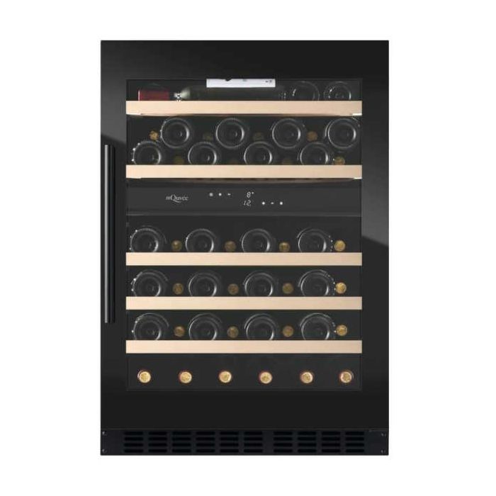 mQuvée WineCave WCD60FGB-800 Hladnjak za vino ugradbeni Kapacitet 53 boce 2 zone (5-20 °C) Crna ručka Š: 59,5 x V: 88/95 x D: 57 cm Hlađenje crnog i bijelog vina Energetska klasa: F Klimatski razred: ST Potrošnja: 100 KWh/god Težina: 52 kg Nivo buke: 36 dB Poseban tihi mod rada Poseban mod za održavanje vlage i temperature Stakleni crni okvir oko vrata Kompresorsko hlađenje UV zaštitno staklo Zaštita boca od vibracija Ugljeni filter Reverzibilna vrata Automatsko odmrzavanje Podesive nogice – 7 cm Alarm temperature i vrata Bijelo LED unutarnje svjetlo LED display Visina vrata 80 cm