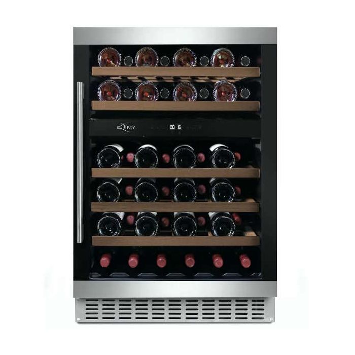 WineCave WCD60M Ugradbeni - podpultni hladnjak za vino Inox / stakleni okvir vrata Kompresorsko hlađenje UV zaštitno staklo Zaštita boca od vibracija Ugljeni filter Reverzibilna vrata Automatsko odmrzavanje Podesive nogice - 7 cm Alarm visoke temperature i otvorenih vrata Bijelo LED unutarnje svjetlo LED display Visina vrata 72 cm Kapacitet 45 boca 2 zone (5-20 °C) Inox ručka Hlađenje crnog i bijelog vina Š: 59,5 x V: 82/89 x D: 56 cm Energetska i klimatska klasa: F, ST, SN Potrošnja: 103 kWh/god Težina: 49 kg Razina buke: 36 dB