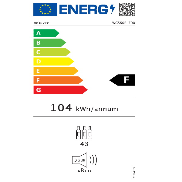 WineCave WCS60PSS-700 Ugradbeni - podpultni hladnjak za vino Inox okvir vrata Kompresorsko hlađenje UV zaštitno staklo Zaštita boca od vibracija Ugljeni filter Reverzibilna vrata Automatsko odmrzavanje Podesive nogice - 7 cm Alarm visoke temperature i otvorenih vrata Bijelo LED unutarnje svjetlo LED display Visina vrata 70 cm Kapacitet 43 boce 1 zona (5-20 °C) Inox ručka Hlađenje crnog ili bijelog vina Š: 59,5 x V: 82/89 x D: 56 cm Energetska i klimatska klasa: F, ST, SN Potrošnja: 104 kWh/god Težina: 46 kg Razina buke: 36 dB