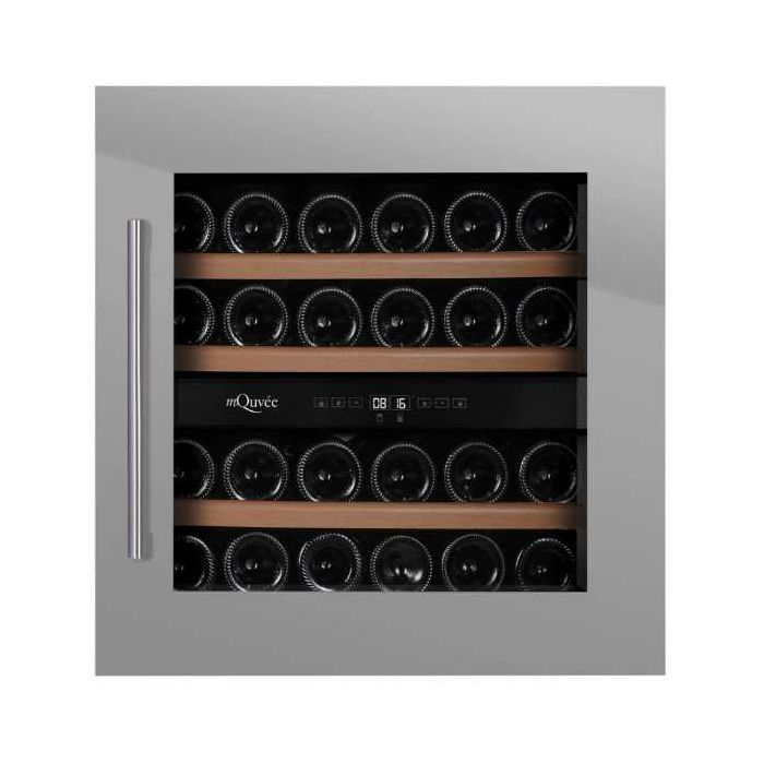 mQuvée WineKeeper 25D WKD25S Ugradbeni hladnjak za vino - ugradnja u kuhinjski element Inox okvir oko vrata Kompresorsko hlađenje UV zaštitno staklo Zaštita boca od vibracija Reverzibilna vrata Ugljeni filter Automatsko odmrzavanje Podesive nogice - 1 cm Alarm temperature i vrata Bijelo LED unutarnje svjetlo LED display Kapacitet: 25 boca 2 zone (5 - 20 °C) Inox ručka Hlađenje crnog ili bijelog vina Š: 59,2 x V: 59,5 x D: 55,9 cm Energetska i klimatska klasa: F, ST Potrošnja: 99 kWh/god Težina: 42 kg Razina buke: 35 dB