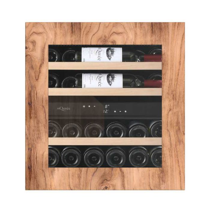mQuvée WineKeeper Exclusive 25D WKED25PRP Hladnjak za vino ugradbeni Kapacitet: 26 boca 2 zone (5-20 °C) Touch open – bez ručke Hlađenje crnog ili bijelog vina Š: 59,2 x V: 59,5 x D: 55,5 cm Energetska klasa: F Klimatska klasa: ST Potrošnja: 99 Kwh/god Težina: 42 kg Nivo buke: 35 dB Drveni okvir bez ručke Kompresorsko hlađenje UV zaštitno staklo Zaštita boca od vibracija Reverzibilna vrata Ugljeni filter Automatsko odmrzavanje Podesive nogice – 1cm Alarm temperature i vrata Bijelo LED unutarnje svjetlo LED display