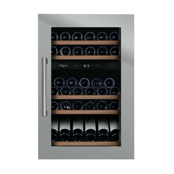 mQuvée WineKeeper 49D WKD49S Ugradbeni hladnjak za vino - ugradnja u kuhinjski element Inox okvir oko vrata Kompresorsko hlađenje UV zaštitno staklo Zaštita boca od vibracija Reverzibilna vrata Ugljeni filter Automatsko odmrzavanje Podesive nogice - 1 cm Alarm temperature i vrata Bijelo LED unutarnje svjetlo LED display Kapacitet: 49 boca 2 zone (5 - 20 °C) Inox ručka Hlađenje crnog i bijelog vina Š: 59,2 x V: 88,5 x D: 55 cm Energetska i klimatska klasa: G, ST Potrošnja: 143 kWh/god Težina: 51 kg Razina buke: 35 dB