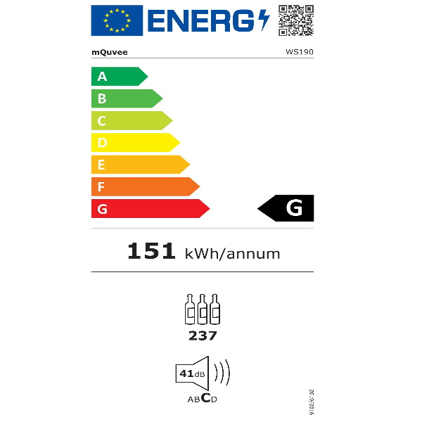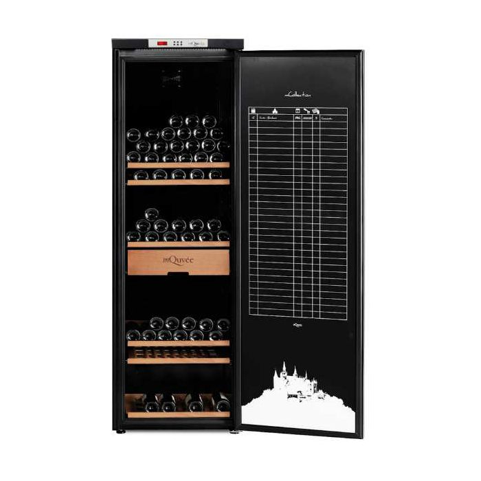 WineStore WS190 Ugradbeni hladnjak serije WineStore Crna drvena vrata Ral 9005 Kompresorsko hlađenje Zaštita boca od vibracija Ugljeni filter Automatsko odmrzavanje Alarm temperature i vrata Bijelo LED unutarnje svjetlo LED display Kapacitet: 237 boca 1 zona (5-20 °C) Inox ili crna ručka Širina: 68 cm Visina: 209 cm Dubina: 85 cm Energetska i klimatska klasa: G, ST-SN Težina: 94 kg Razina buke: 44 dB