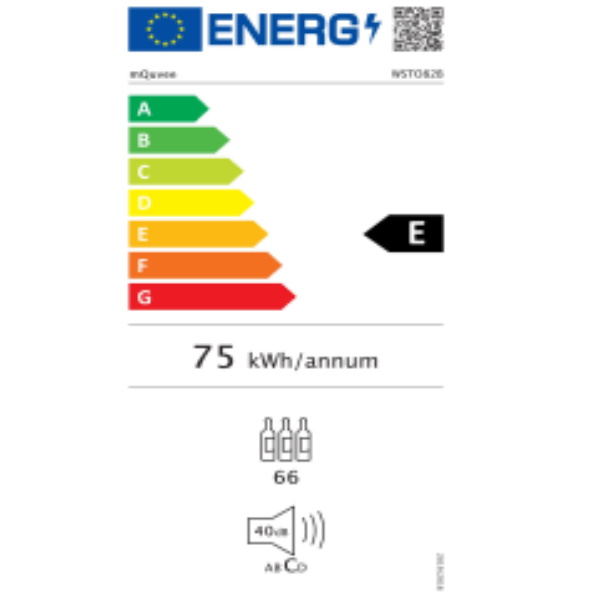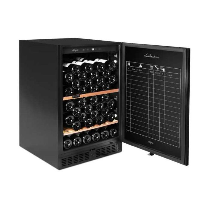 WineStore WSTO82B Ugradbeni podpultni hladnjak serije WineStore Crna drvena vrata Kompresorsko hlađenje Zaštita boca od vibracija Ugljeni filter Reverzibilna vrata Automatsko odmrzavanje Podesive nogice - 7 cm Alarm temperature i vrata Bijelo LED unutarnje svjetlo LED display Kapacitet: 66 boca 1 zona (5-20 °C) Inox ili crna ručka Širina: 59,5 cm Visina: 82/89 cm Dubina: 57 cm Energetska i klimatska klasa: E, ST-SN Potrošnja: 75 kWh/god Težina: 43 kg Razina buke: 36 dB