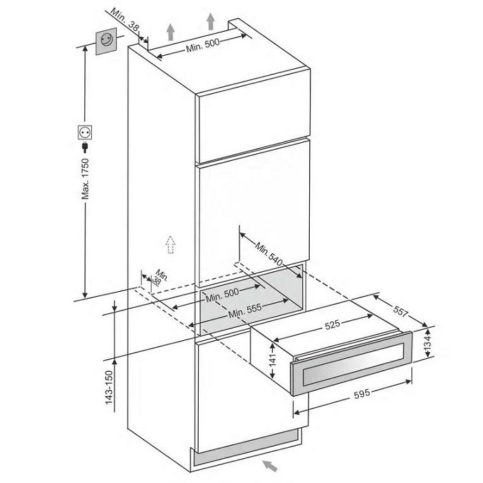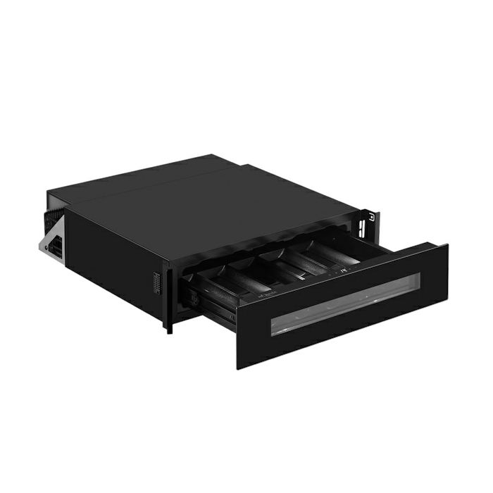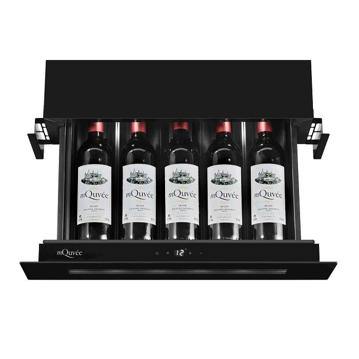 mQuvee WKS5F - ladičar Ugradbeni hladnjak za vino Skrivena prednja ventilacija Kapacitet: 5 boca Hlađenje: 5C-20C Dimenzije: širina 59,5 x visina 14,1 x dubina 55,7 cm Klimatska klasa: ST Potrošnja: 88 Kwh/god Snaga: 60 W Težina: 16 kg UV zaštitno prednje staklo Filter protiv mirisa Energetska klasa: F Nivo buke: 35 dB Push/pull: otvaranje vrata na senzor bez ručke