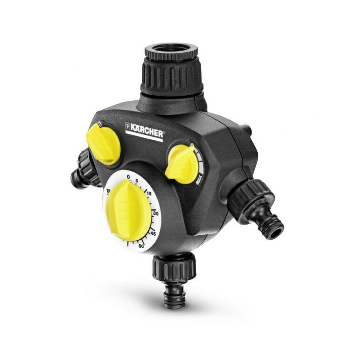 WT 2000 je trosmjerni razdjelnik i mjerač vremena za navodnjavanje u jednom. Ima dva slavinska priključka s dva neovisna, kontinuirano podesiva regulatora. Karakterizira ga optimalan protok vode. U treći priključak za vodu ugrađen je mjerač vremena za zalijevanje. Vrijeme navodnjavanja može se beskonačno podešavati do 120 minuta. Nakon što istekne unaprijed postavljeno vrijeme, mjerač vremena automatski zaustavlja navodnjavanje. WT 2.000 s priključkom za vodu G1 i reduktorom G3/4 univerzalno je upotrebljiv u kombinaciji sa svim dostupnim vrtnim crijevima. Ističe se izdržljivom kvalitetom i ergonomskim dizajnom koji omogućuje ugodno i jednostavno rukovanje. Slijepa matica s izdržljivim unutarnjim navojem osigurava jednostavno i brzo pričvršćivanje na slavinu za vodu. Kompatibilan s većinom dostupnih klik sustava.