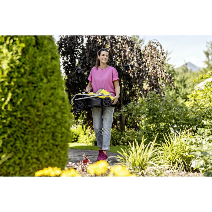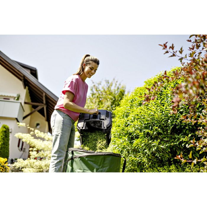 Lagana i okretna: sa širinom košnje od 32 cm, baterijska kosilica LMO 2-18 Battery Set idealna je za manje travnjake do 250 četvornih metara. Visina rezanja može se podesiti na jednu od pet razina, od 25 do 60 mm. U kombinaciji sa snažnim motorom bez četkica, trava je uvijek precizno pokošena. Prilikom košnje uz rubove ili obrubke, češljevi za travnjak poravnavaju vlati trave, osiguravajući da nijedna oštrica ne promaši. Pokošena trava se skuplja u sakupljaču trave od 30 litara. Vodilica s podesivom visinom osigurava uspravan i udoban položaj tijekom košnje, a sklopivi dizajn omogućuje uštedu prostora pri skladištenju. Transportna ručka može se koristiti i za nošenje lagane baterijske kosilice gdje god je potrebno, na primjer gore-dolje po stepenicama. U opsegu isporuke uključena je jedna baterija i brzi punjač.