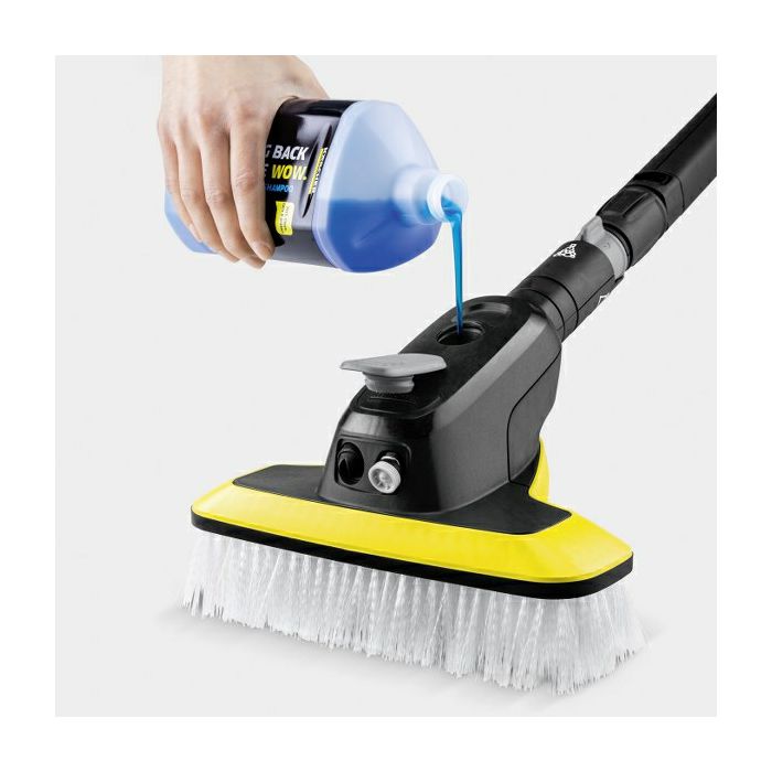WB 7 Plus 3 u 1 četka za pranje kombinira 3 važne funkcije u jednom proizvodu. Nanošenje pjene za čišćenje, čišćenje mekim čekinjama i omekšavanje tvrdokorne prljavštine visokotlačnim linearnim mlazom - sve je moguće, bez mijenjanja pribora. Tražena funkcija se jednostavno odabire, štedi vrijeme, udobna je i uvijek daje željene rezultate čišćenja - čak i na osjetljivim površinama kao što su boja, staklo ili plastika. Integrirani spremnik deterdženta omogućuje korisnicima dulji rad bez ponovnog punjenja.
