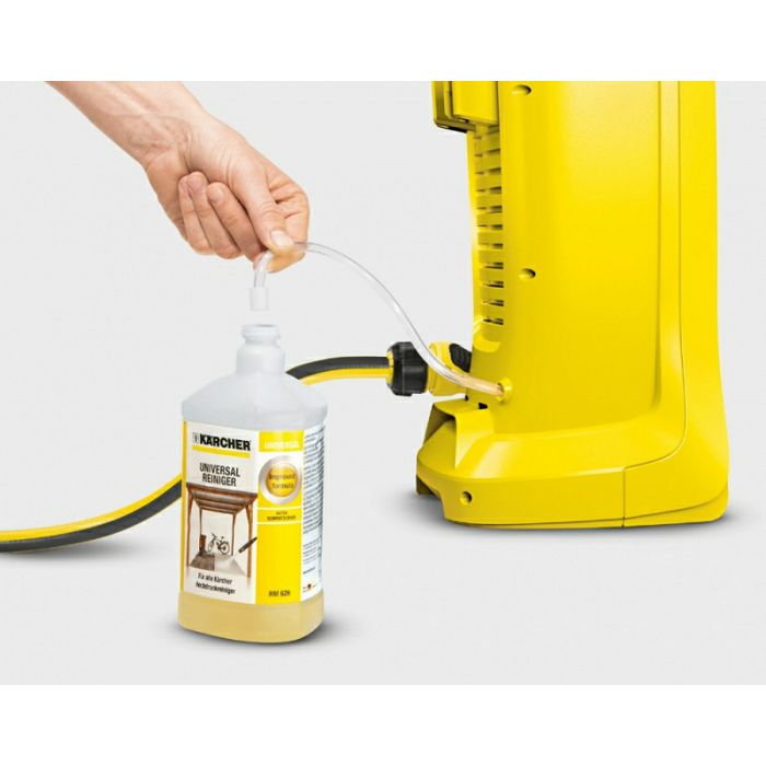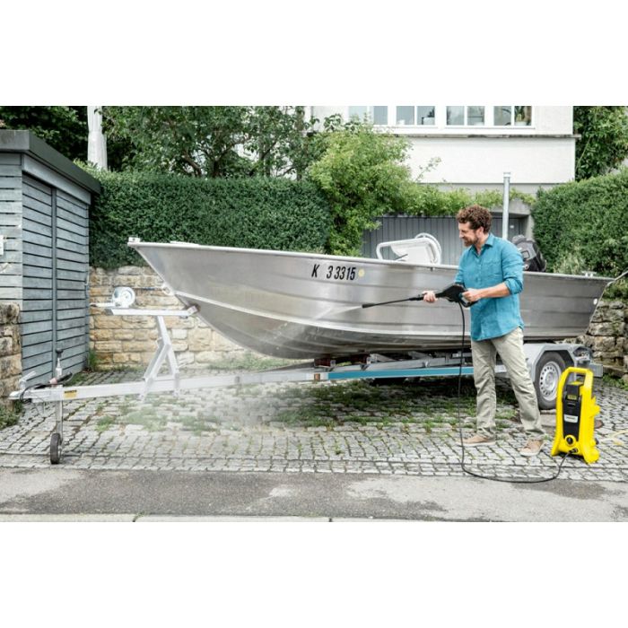 Nema li priključka za struju? To nije problem za baterijski visokotlačni čistač K 2 Battery. Zahvaljujući izmjenjivoj Li-Ion bateriji od 36 V / 5,2 Ah iz Kärcher platforme za baterije, ovaj uređaj je idealan za sveobuhvatno čišćenje malih automobila, motocikala, bicikala, čamaca, kao i za sitno čišćenje oko kuće - također bez struja . Punjiva baterija maksimalnog radnog vremena od 17 minuta, kao i punjač uključeni su u isporuku. Za usisavanje vode iz spremnika uređaj se može kombinirati s Kärher usisnim crijevom. Također uključeno: 2 mlazna crijeva za promjenu između standardnog i pojačanog načina rada, analogni zaslon na visokotlačnom pištolju za trajno prikazivanje odabranog načina rada tijekom trajanja čišćenja, usisno crijevo za sredstvo za čišćenje, kao i integrirani filtar za vodu za zaštitu od prodiranja čestica prljavštine u visokotlačnu pumpu.