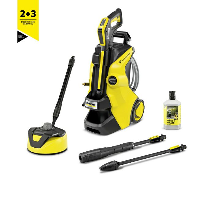 S visokotlačnim čistačem K 5 Power Control Flex Home možete očistiti svaku površinu pod pravim tlakom. Savjetnik u aplikaciji Kärcher Home & Garden pomaže korisniku da pronađe pravi tlak praktičnim savjetima za svaku situaciju čišćenja i zadatak čišćenja – za savršene rezultate. Za maksimalnu kontrolu, razina tlaka može se jednostavno podesiti okretanjem cijevi za prskanje ili provjeriti na pištolju G 160 Q Power Control. Visokotlačni čistač također impresionira Kärcher Plug 'n' Clean sustavom deterdženta za jednostavnu izmjenu deterdženta, visokotlačnim crijevom PremiumFlex za dodatnu udobnost, visokokvalitetnom aluminijskom teleskopskom ručkom za jednostavan transport i sustavom Quick Connect za uštedu vremena i napora pri umetanju i uklanjanju visokotlačnog crijeva, kao i pištolja, kao i parkirnim položajem kako bi se osigurao pristup priboru u svakom trenutku. Uključuje Home Kit s podnom mlaznicom T 5 i 1 litrom sredstva za čišćenje kamena i fasada za čišćenje velikih površina bez prskanja.