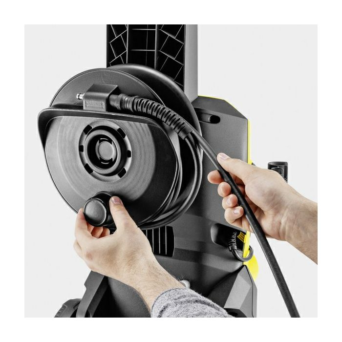 Uredno skladištenje koje štedi prostor: s praktičnim kolutom za crijevo, visokotlačno crijevo je optimalno zaštićeno i lako dostupno. Spremite crijevo, mlaznice za prskanje, pištolj i kabel na način koji štedi prostor.