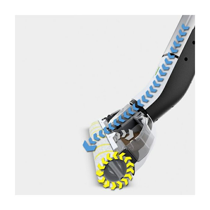 Sustav s 2 spremnika: kontinuirano vlaženje valjaka iz spremnika za čistu vodu, dok se prljavština skuplja u spremniku za prljavu vodu. Bez napora: bez nošenja kanti, bez ručnog cijeđenja krpa za pod, bez ribanja. Rolice perite u perilici rublja na 60°C.