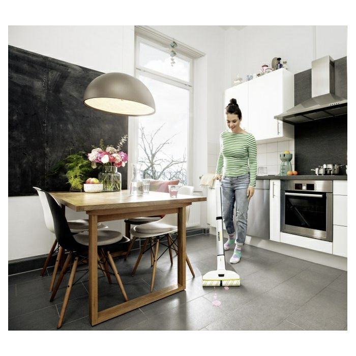 Uklanjanje mrlja i izlijevanja do ruba - nema potrebe za kantom ili neumornim čišćenjem. Nije moguće? Razmisli ponovno! Čistač EWM 2 s dva spremnika to omogućuje - a uobičajene krpe više nisu potrebne. Rotirajući valjci stalno se vlaže čistom vodom, dok skupljena prljavština završava u spremniku prljave vode. Uređaj ostavlja podove do 20% čišćima od uobičajenih krpa*. Zahvaljujući tankom dizajnu i fleksibilnom okretnom zglobu, EWM 2 ne samo da lako ulazi ispod namještaja, već također štedi prostor za pohranu. Vrijeme sušenja poda je samo oko dvije minute, što ga čini savršeno pogodnim za korištenje na svim vrstama tvrdih podova (na primjer, pločice, parket, laminat, PVC i vinil). Snažna litij-ionska baterija ima vrijeme rada od cca. 20 minuta. To vam omogućuje čišćenje do 60 m2 površine s uređajem.