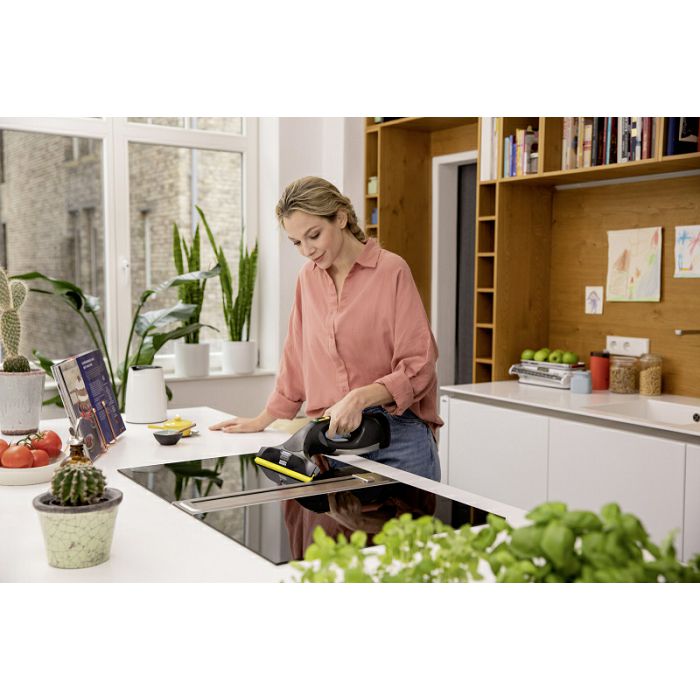 Značajke i prednosti Izmjenjiva baterija: • Zahvaljujući odvojivoj i opcijski dostupnoj dodatnoj bateriji, sada ćete čistiti sve prozore odjednom, bez dodatnog punjenja baterije. Praktično čišćenje rubova prozora: • Zahvaljujući ručno podesivom odstojniku, postići ćete izvrsne rezultate čišćenja bez mrlja, sve do rubova prozora. Udobna ručka s indikatorom napunjenosti baterije: • Uz gumeni umetak na dršci uređaja, rukovanje je sada značajno poboljšano. 3 LED diode pokazuju trenutno stanje baterije. Zamjenjiva usisna mlaznica: • Ovisno o veličini površine za čišćenje, možete koristiti malu ili veliku usisnu mlaznicu. Ugodno tiho: • Budući da je čistač prozora vrlo tih, rad s njim je posebno ugodan. Izvornik: • Izvorna kvaliteta Kärchera, izumitelja čistača prozora. 3x brže: • Čišćenje prozora Window Vac-om je tri puta brže nego s konvencionalnim metodama. Rezultat bez mrlja i mrlja: • Zahvaljujući električnom usisavanju vode, zauvijek je kraj dosadnog kapanja vode. Za blistavo čiste prozore. Potpuno higijenski: • Brzo i jednostavno pražnjenje spremnika bez kontakta s prljavom vodom. Razne upotrebe: • Sredstvo za pranje prozora može se koristiti i za sve druge glatke površine kao što su pločice, ogledala, tuš kabine i sl.