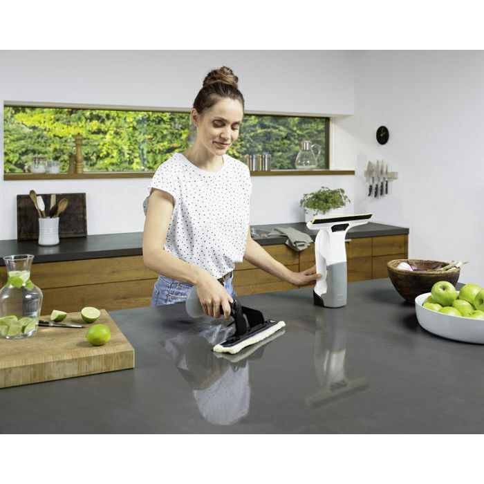 Kärcher je ponovno poboljšao originalni WV i razvio još fleksibilniji model s inovativnom tehnologijom oštrica i duljim trajanjem baterije - WV 6 Plus. Nova duža usisna oštrica omogućuje uklanjanje viška tekućine s cijelih površina u samo jednom punjenju. Izuzetno dugo trajanje baterije WV-a od 100 minuta znači da možete raditi i dulje. Možete precizno planirati svoje čišćenje zahvaljujući zaslonu koji prikazuje preostale minute rada. Kao i obično, inteligentna kombinacija boce s raspršivačem i krpe za čišćenje od mikrovlakana, zajedno s funkcijom usisavanja na čistaču, osigurava iznimno učinkovito čišćenje i blistavo čiste prozore - bez mrlja i ostataka. Ergonomski Kärcher WV 6 Plus čistač također vam omogućuje da čistite prozore na posebno higijenski način, jer ne dolazite u izravan kontakt s prljavom vodom.