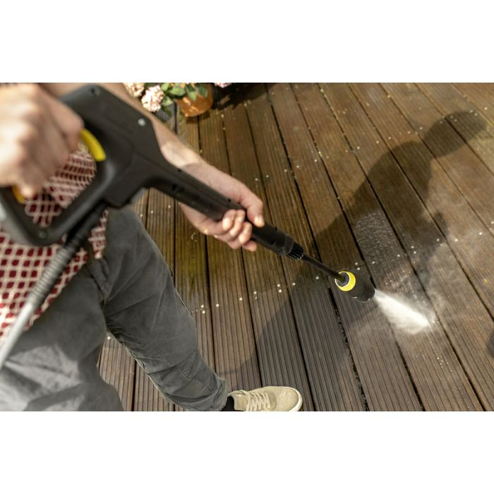 Visokotlačni perač K 5 Comfort Premium Home_x000D_ Visokotlačni perač K 5 Comfort Premium Home s površinskim učinkom od 40 m2/h, motorom hlađenim vodom, crijevom PremiumFlex i kolutom za crijevo. S Home Kitom._x000D_ _x000D_ Visokotlačni perač K 5 Comfort Premium Home idealan je za uklanjanje umjerene nečistoće u domu i automobilu. Uključuje Home Kit s površinskim čistačem T 5 i 1 litrom sredstva za čišćenje kamena i fasada. Uređaj je opremljen robusnim, vodom hlađenim motorom i osigurava dosljedno visoku učinkovitost čišćenja. Integrirani kolut za crijevo s fleksibilnim crijevom PremiumFlex omogućuje udobno rukovanje i osigurava maksimalnu slobodu kretanja. Pištolj G 180 Q COMFORT!Hold znatno smanjuje pritisak držanja i time osigurava čišćenje bez umora. Praktični sustav Quick Connect također omogućuje brzo spajanje i odspajanje visokotlačnog crijeva. Svestrana 4-u-1 višemlazna mlaznica bez napora prebacuje se između 4 načina prskanja okretanjem glave mlaznice i prilagođava se različitim zadacima čišćenja. Osim toga, koncept 2-u-1 čistača nudi dodatnu praktičnost i savršenu primjenu sredstva za čišćenje koja odgovara trenutnom zadatku. Kabeli i pribor mogu se jednostavno i kompaktno pohraniti na uređaju. Za optimalnu podršku, aplikacija Kärcher Home & Garden nudi integriranog savjetnika za primjenu te korisne savjete i trikove._x000D_ _x000D_ Značajke i prednosti_x000D_ Koncept pametnog uređaja:_x000D_ • Dizajn uređaja ima organizirane ulaze i izlaze za kabele i crijeva. To pruža slobodu kretanja i radni prostor te općenito olakšava rukovanje kabelima i crijevima._x000D_ • Ispravno poravnanje uređaja s crijevima i kabelskim priključcima u odnosu na izvor napajanja i vode znatno olakšava čišćenje._x000D_ Pištolj Comfort s COMFORT!Hold i sustavom brzog spajanja:_x000D_ • COMFORT!Hold znatno smanjuje pritisak držanja. Posebno povoljno za dugotrajnu upotrebu pri čišćenju velikih površina._x000D_ • Brzi priključak za jednostavno spajanje visokotlačnog crijeva._x000D_ 4-u-1 Multi Jet:_x000D_ • Brojne mogućnosti čišćenja zahvaljujući 4 različite mlaznice u jednoj cijevi za prskanje._x000D_ • Nema potrebe za promjenom crijeva za veću udobnost. Jednostavno okrenite glavu cijevi za prskanje kako biste promijenili uzorak prskanja._x000D_ Koncept deterdženta 2Way!Wash™:_x000D_ • Inovativni koncept deterdženta osigurava maksimalnu fleksibilnost i optimalno doziranje za svaki zadatak čišćenja._x000D_ • Deterdžent se može dozirati putem uređaja i Multi Jet mlaznice ili, za više pjene, putem mlaza za pjenu, uključujući doziranje deterdženta._x000D_ • Kärcher deterdženti (dostupni kao pribor) ne samo da štite i njeguju površine,