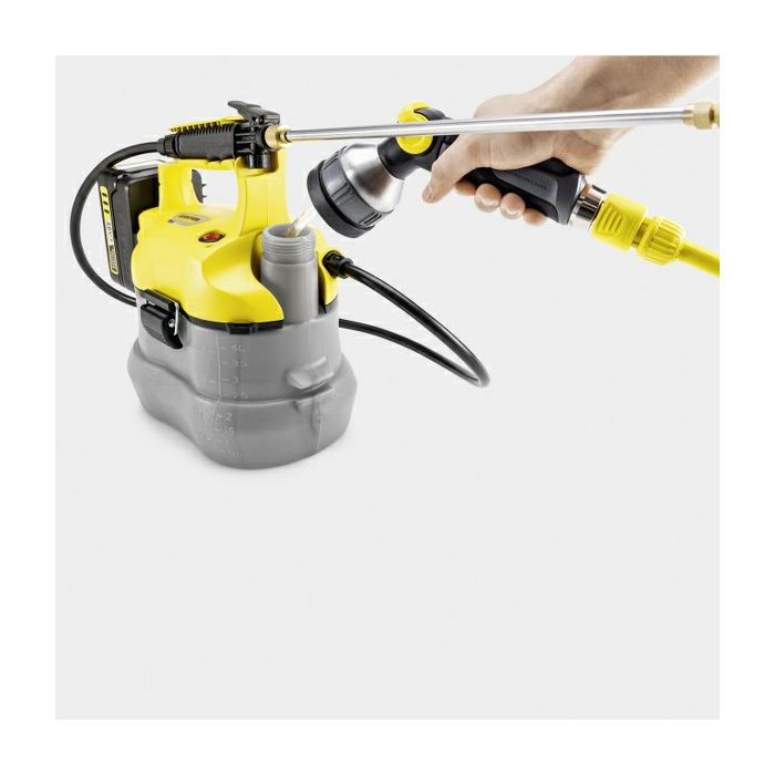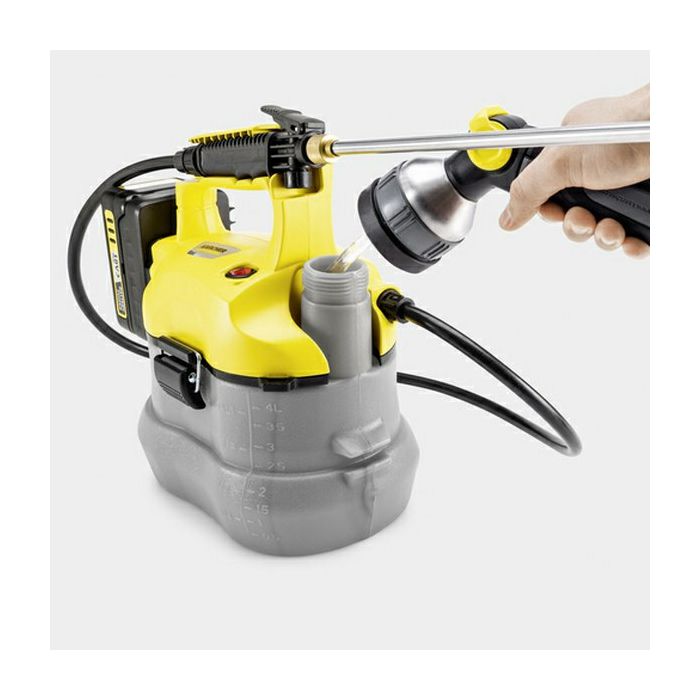 ZNAČAJKE I PREDNOSTI Teleskopska cijev za prskanje - prošireni domet, lakši pristup teško dostupnim mjestima. Okidač - za jednostavan rad bez zamora. Beskonačno promjenjiv uzorak raspršivanja - ovisno o primjeni, korisnik može birati između fine maglice i točkastog mlaza. Spremnik od 4 litre s indikatorom napunjenosti - stalni pregled razine tekućine. Integrirana mjerna posuda u poklopcu spremnika - za brzo mjerenje spreja. Držač cijevi za raspršivanje - za pohranu koja štedi prostor. 18 V Kärcher baterija (nije uključena) - tehnologija u stvarnom vremenu s LCD zaslonom: preostalo vrijeme rada, preostalo vrijeme punjenja i kapacitet baterije. Trajnost i učinkovitost osiguravaju litij-ionske ćelije. Zamjenjiva baterija također se može koristiti s drugim uređajima iz Kärcherove 18-V Battery Power platforme.