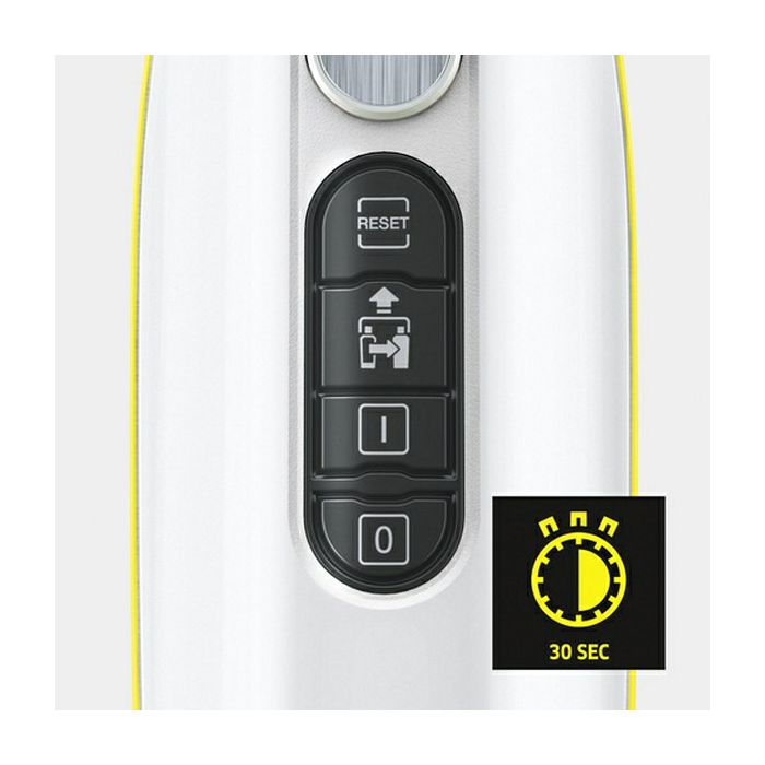 ZNAČAJKE I PREDNOSTI Prednamještena 3-stupanjska regulacija količine pare za čišćenje različitih površina Non-stop para i ugrađeni uložak za uklanjanje kamenca Spremnik se može puniti u bilo kojem trenutku bez ikakvih problema - za stalnu paru bez prekida. Uz brzo vrijeme zagrijavanja od samo 30 sekundi, uređaj je spreman za korištenje u tren oka. LED traka na uređaju pokazuje zagrijavanje i spremnost za rad Potpuno jednostavan za korištenje zahvaljujući povratnoj informaciji o radnom statusu uređaja u stvarnom vremenu. Crveno pulsiranje označava da se uređaj zagrijava. Zeleno svjetlo označava da je uređaj spreman za rad. EasyFix podna mlaznica s fleksibilnim spojem i pričvršćenjem krpe za pod na čičak Optimalni rezultati čišćenja na raznim tvrdim podovima u kućanstvu zahvaljujući učinkovitoj tehnologiji lamela. Zamjena krpe bez kontakta s nečistoćama i udobno postavljanje krpe za pod zahvaljujući čičak sustavu. Ergonomsko, učinkovito čišćenje s potpunim kontaktom s podom za svaku veličinu korisnika zahvaljujući fleksibilnom spoju mlaznice. Pametno podešavanje tvrdoće vode Optimalna zaštita od kamenca za dug vijek trajanja uređaja. Sa nastavkom za tepih lako i udobno možete osvježiti tepihe. On/Off prekidač na uređaju