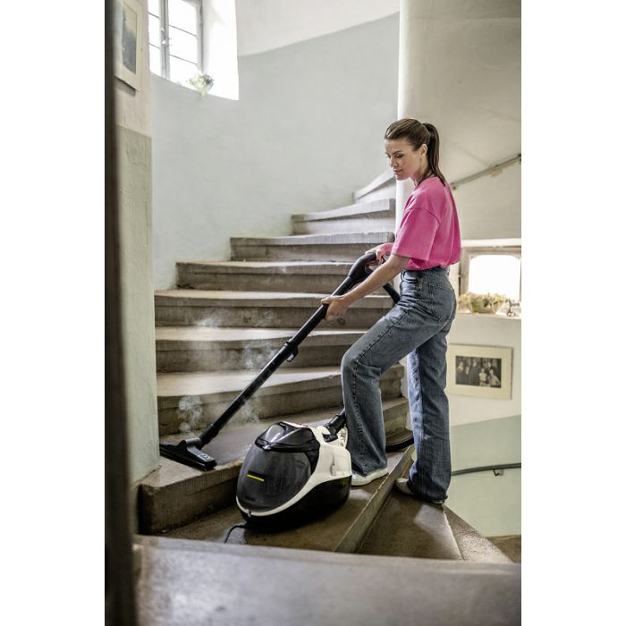 Parni usisivač Kärcher SV 7 spaja prednosti parnih usisavača s prednostima suhih usisavača. Iz zemlje npr. usisavaju mrvice, mokro ih brišu i na kraju čak i osuše. I sve to udobno u jednom radnom koraku. S ovim svestranim uređajima i odgovarajućim priborom, svatko se može nositi sa zadacima čišćenja kućanstva - lako, udobno, brzo i bez kemikalija.