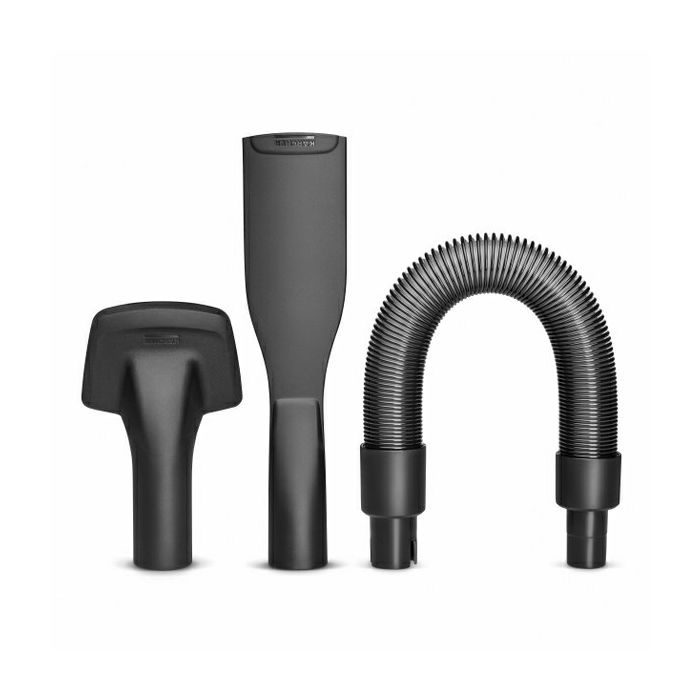 Obnovljeni Kärcher pribor za čišćenje unutrašnjosti automobila uvjerava visokom razinom čistoće: pomoću četke za prašinu i posebne mlaznice naporan proces čišćenja unutrašnjosti vašeg automobila postaje lakši nego ikad prije. Fleksibilno crijevo podesivo po duljini osigurava izuzetno jednostavno rukovanje: lako pristupa čak i najmanjim pukotinama i teško dostupnim mjestima. Tapecirane površine, patosnice, armaturna ploča, središnja konzola i prtljažnik mogu se potpuno očistiti.