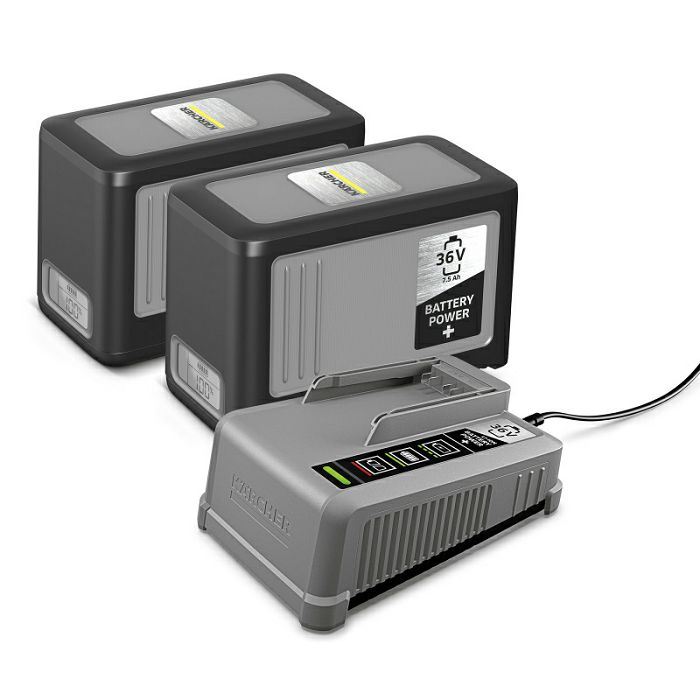 Snažni i iznimno izdržljivi: akumulatori od 36 V/7,5 Ah s inovativnom Real Time tehnologijom dio su našeg početnog seta Battery Power+ 36/75 koji omogućuje nesmetan rad sa svim uređajima koji se temelje na platformama baterija Kärcher Battery Power 36 V bez ikakvih problema i Kärcher Napajanje baterije+. To je osigurano snažnim uključenim brzim punjačem, koji puni jednu bateriju dok vi koristite drugu.