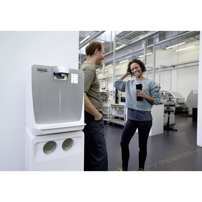 Naš aparat za vodu WPD 200 Adv. S Black je opremljen patentiranim sustavom toplinskog čišćenja, integriranom pumpom i učinkovitim funkcijama za uštedu energije (Energy Reduced i Stand-by način rada) i transparentnim zaslonom, a korisni i udobni dodaci također su dostupni kao standard. Napredni stolni uređaj u crnoj boji prikladan je za do 100 osoba i osigurava nehlađenu, rashlađenu, gaziranu Medium ili Classic, vruću i vrlo vruću vodu u bilo kojem trenutku pritiskom na gumb. Otpadna voda iz odvodnog spremnika praktično se usmjerava izravno u odvod, a na zahtjev se može uključiti i postolje i odvod u vanjski spremnik. Kada trebate filter za vodu za ovaj uređaj, možete birati između filtera Kärcher Active Pure ili Hy Protect.