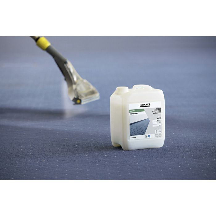 Korištenje CarpetPro RM 762 tvrtke Kärcher nakon dubinskog čišćenja učinkovito sprječava brzo ponovno zaprljanje tijekom duljih intervala između mokrih čišćenja, što zauzvrat smanjuje troškove. Posebna zaštita za sintetička i prirodna vlakna ima Woolsafe certifikat, brtvi vlakna umjesto da se lijepe za njih i povećava njihovu otpornost. Suha prljavština se labavo taloži na tretiranim površinama i može se lako usisati. S druge strane, mokra prljavština se skuplja na vrhu vlakana, što olakšava uklanjanje. CarpetPro RM 762 prikladan je za upotrebu s Puzzi strojevima za raspršivanje ili jednostavnim raspršivačima i, budući da ne sadrži fosfate, sprječava stvaranje algi u vodenom krugu.
