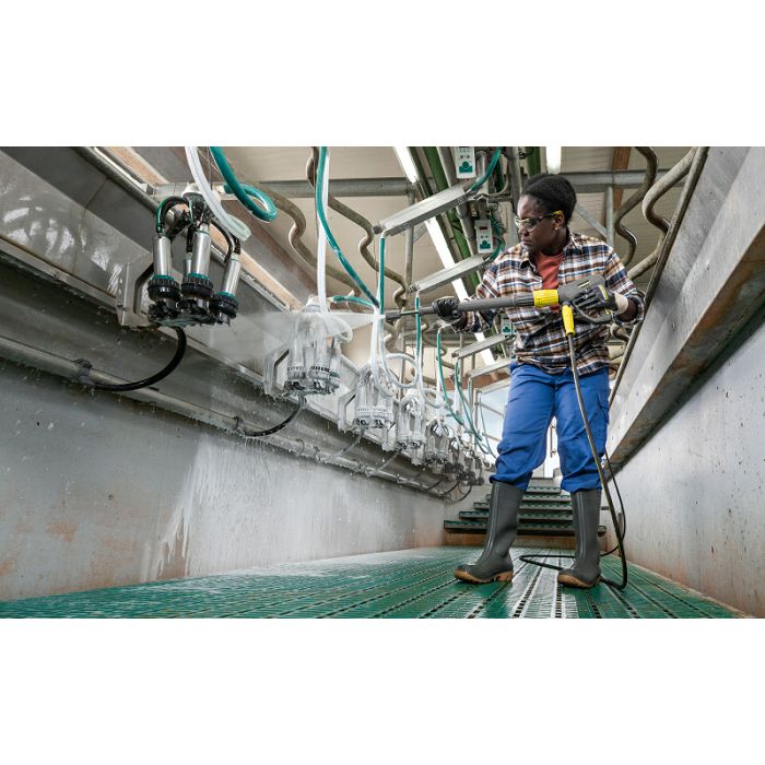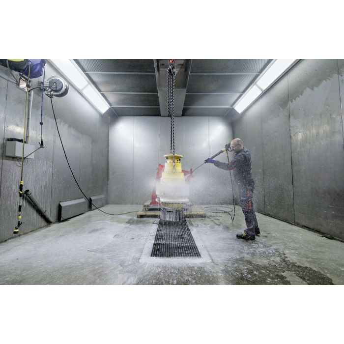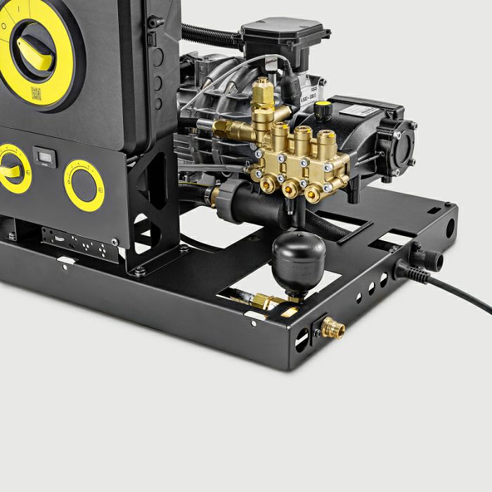 Ovaj stacionarni visokotlačni čistač s hladnom vodom za ulaznu temperaturu vode do 60 °C ima protok od 1.000 l/h i impresivan radni tlak od 210 bara. Veliki kapacitet omogućuje kontinuiranu upotrebu u zahtjevnim uvjetima, primjerice u poljoprivredi ili industriji. Robusno kućište i okvir od čelika obloženog prahom, stabilna pumpa pogonjena radilicom s mesinganom glavom cilindra i 4-polni spororotirajući vodeno hlađeni elektromotor osiguravaju robusnost i dug vijek trajanja. Uređaj također ima integrirani spremnik za vodu sa zaštitom od rada na suho i indikatorom pražnjenja. Dovod deterdženta vrši se preko posebnog priključka s dozirnim ventilom, a stanje pražnjenja označava i indikator. Uređaj ima veliki okretni gumb za jednostavno rukovanje, a radovi na montaži i održavanju su brzi i jednostavni. Dodaci nisu uključeni u osnovnu isporuku i dostupni su na svim mjestima korištenja: manometar i brojač radnog vremena, ulaz za drugi deterdžent, automatsko rasterećenje tlaka i daljinski upravljači.