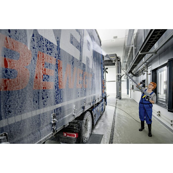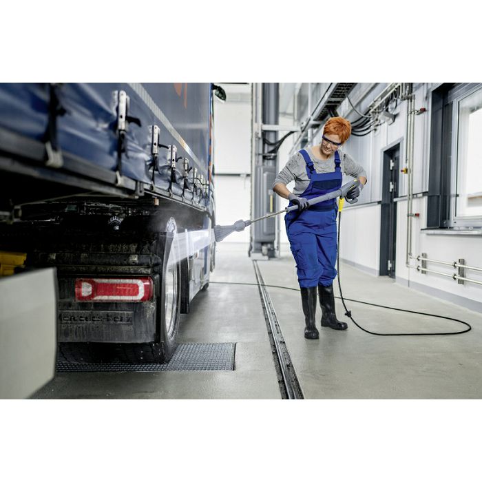Prednosti i značajke Izdržljiv i robustan: • Pouzdana i izdržljiva Kärcher ručna pumpa visokog učinka osigurava optimalan tlak. • 4-polni, spororotirajući elektromotor osigurava dug radni vijek. • Robusna pumpa s mesinganom cilindričnom glavom i visokokvalitetnim materijalima za dug životni vijek. Oprema visoke kvalitete: • Robusni okvir i kućište izrađeni su od čelika obloženog prahom. • Spremnik s plovnim ventilom i zaštitom od rada na suho. • Spreman za spajanje daljinskog upravljača. Jednostavno upravljanje: • Samo jedan okretni gumb za sve funkcije olakšava korištenje bez dugog uvoda. • Praktičan prikaz pogreške odmah obavještava korisnika i štedi vrijeme. • Dizajn prilagođen korisniku s razumljivim simbolima. • Nema dugotrajne obuke. Robustan dizajn za teške radne uvjete: • Pogodno za svakodnevnu upotrebu. • Može se koristiti u zahtjevnim radnim okruženjima. • Inovativan, dugovječan, robustan i stoga vrlo ekonomičan uređaj. Zaliha deterdženta: • Sustav za dovod deterdženta s ventilom za doziranje i indikatorom pražnjenja dio je standardne opreme. • Jedinica za doziranje deterdženta na usisnoj strani. • Opcijski dostupan: drugi ulaz s ventilom i pokazivačem praznog. Uvijek fleksibilan zbog mogućnosti