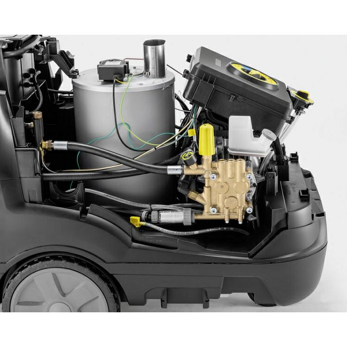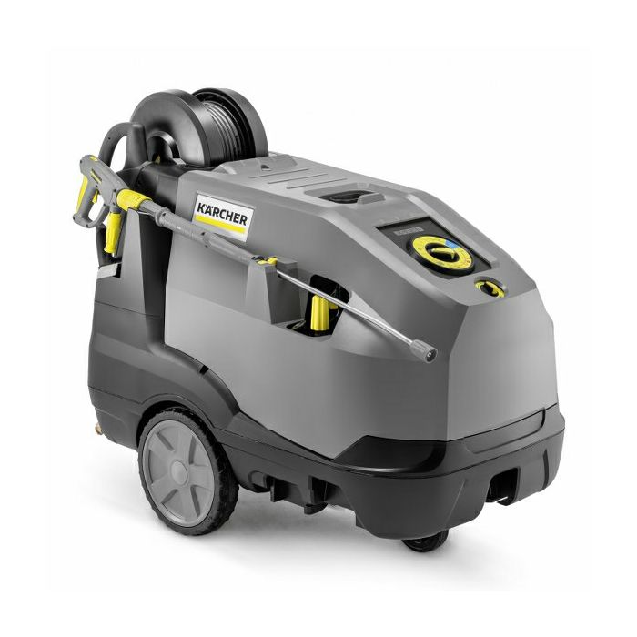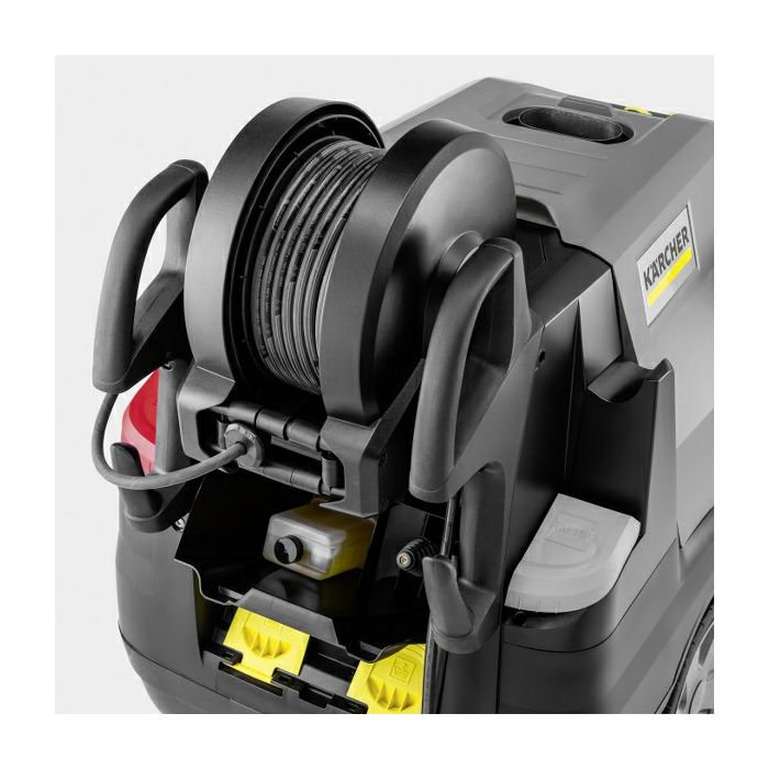 ZNAČAJKE I PREDNOSTI Automatski kolut za crijevo Glatka Ultra Guard HD cijev otporna na ogrebotine s Teflon® premazom. Automatski kolut za praktično i sigurno skladištenje 20-metarskog visokotlačnog crijeva. Širok raspon dodataka s EASY!Lockom EASY!Force Advanced za neumoran rad bez sile zadržavanja. Tlak i volumen vode mogu se podesiti na servo upravljanju koje se nalazi između crijeva i pištolja za okidanje. Rotirajući koplje od nehrđajućeg čelika od 1050 mm. Na razini eco!efficiency uređaj radi u ekonomičnom temperaturnom području (60 °C) - i to pri punom protoku vode. Optimalnim podešavanjem ciklusa plamenika potrošnja goriva smanjena je za 20% u odnosu na puno opterećenje. Visoko učinkovita, dokazana tehnologija plamenika "Made in Germany". 4-polni elektromotor sa 3-klipnom aksijalnom pumpom. Vodeno hlađeni motor visoke učinkovitosti i dugog vijeka trajanja. Lako dostupan filter za vodu štiti pumpu od čestica prljavštine u vodi. Sigurnosni ventili, zaštita od nedostatka vode i goriva osiguravaju dostupnost stroja. Sustav mekog prigušivanja (SDS) kompenzira vibracije i vršne pritiske u visokotlačnom sustavu. Više prostora za pohranu pribora ugrađenog u stroj Svi dodaci mogu se pohraniti izravno na uređaj. Postoje 2 kuke za vješanje usisnog crijeva i mrežnog kabela. Prostrani pretinac za odlaganje npr. za sredstvo za čišćenje, rukavice ili alat. Jednostavno prebacivanje između posuda za deterdžent 1 i 2. Precizno doziranje sredstva za čišćenje s funkcijom ispiranja. Precizan dozirni ventil osigurava nisku potrošnju. Jogger princip s velikim gumenim kotačima i kotrljajućim valjkom. Ugrađeni otvor za noge za jednostavno kretanje po platformama. Ručke za guranje za lakši transport i manevriranje. Jedan prekidač za sve funkcije uređaja.