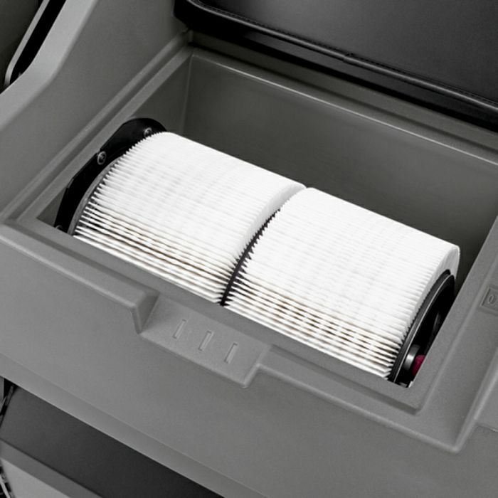 Oprema: • Ručno čišćenje filtera • Automatsko čišćenje filtera • Plutajući glavni valjak za metenje • Servo upravljač • Podešavanje protoka usisavanja • Poklopac za grubu prljavštinu • Princip pometanja gdje se materijal transportira preko valjka • Vožnja naprijed • Vožnja unatrag • Usisavanje • Hidra. ispuštanje na visinu • Za vanjsku upotrebu • Za unutarnju upotrebu • Brojač radnih sati • Funkcija čišćenja s mužem