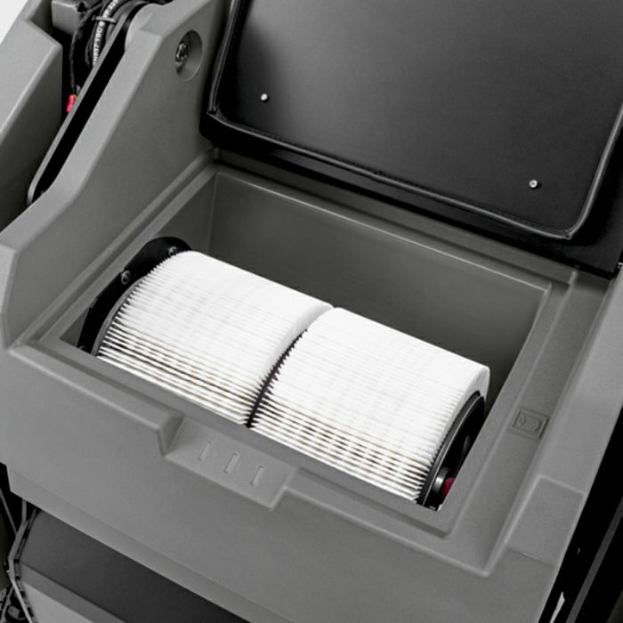 Bilo da radite u vrlo prašnjavim vanjskim prostorima ili u dobro prozračenim zatvorenim prostorima: robusni Kärcher čistač KM 100/120 R G impresionira svojom svestranošću, izvrsnim rezultatima metenja i mnogim opcijama koje se mogu prilagoditi individualnim zahtjevima kupaca. Zahvaljujući plutajućoj valjkastoj četki, bez problema se nosi s raznim teksturama poda, dok velika posuda za smeće od 120 litara, rotirajuća bočna četka i radna brzina od 7 km/h osiguravaju opsežno i brzo metenje. Stroj je jednostavan i ergonomski upravljiv, ima praktično i automatsko visoko pražnjenje spremnika (do 152 cm) i odličan pregled površina koje je potrebno očistiti. Provjereni sustav okruglih filtara s površinom filtra od 6 m2 omogućuje nastavak metenja gotovo bez prašine - automatsko čišćenje filtra udvostručuje vijek trajanja filtra i štiti zdravlje korisnika bez obzira na količinu prljavštine. Osim toga, opcijski setovi za montažu omogućuju dodatnu prilagodbu opreme kako bi zadovoljila gotovo sve individualne zahtjeve.