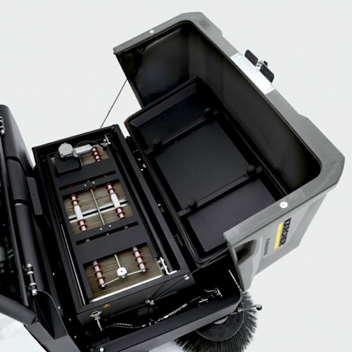 Izdržljiva hidraulična čistačica na UNP KM 130/300 R Bp ne ispušta nikakve emisije i posebno je prikladna za građevinske materijale, metalurgiju, ljevaonice i sve druge industrije u kojima ima puno prljavštine. Princip rada kante za smeće omogućuje precizno i pouzdano metenje fine i grube prljavštine. Valjak za metenje automatski se prilagođava neravnom terenu, inovativni sustav za metenje smanjuje trošenje na minimum. Glavni valjak za čišćenje može se zamijeniti u tren oka bez upotrebe alata. Tijekom transportne vožnje, sakupljač smeća se automatski zatvara. Dva ravna filtera, koji su postavljeni u horizontalnom položaju, osiguravaju čist zrak čak i kada je vrlo prašnjav. Čišćenje filtra odvija se pritiskom na gumb uz pomoć iznimno učinkovitog dvostrukog strugača. Filter je lako dostupan i može se lako zamijeniti bez upotrebe alata. Motor je također lako dostupan. Osnovne funkcije vrlo su jednostavne za rukovanje zahvaljujući konceptu EASY-Operation.