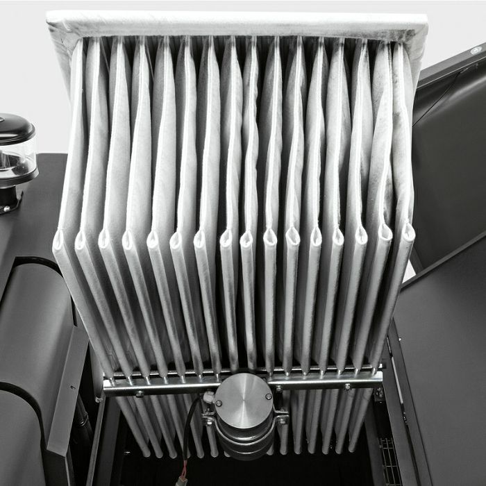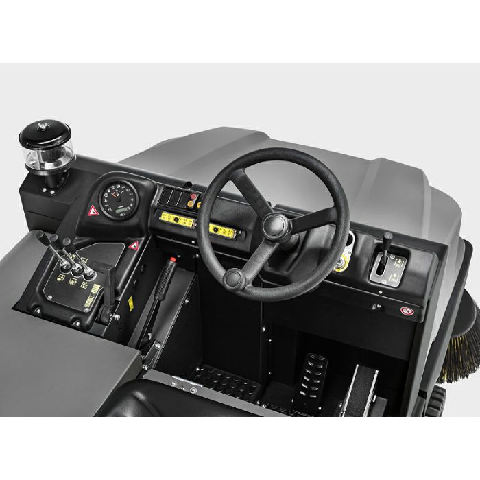 Oprema • Ručno čišćenje filtera • Podesivi glavni valjak za metenje • Servo upravljač • Podešavanje protoka usisavanja • Princip odlagališta • Vožnja naprijed • Vožnja unatrag • Usisavanje • Hidra. ispuštanje na visinu • Za vanjsku upotrebu • Brojač radnih sati • Funkcija čišćenja s mogućnošću isključivanja