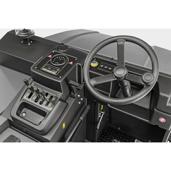Oprema • Ručno čišćenje filtera • Podesivi glavni valjak za metenje • Servo upravljač • Princip odlagališta • Vožnja naprijed • Vožnja unatrag • Usisavanje • Hidra. ispuštanje na visinu • Za vanjsku upotrebu • Brojač radnih sati • Funkcija čišćenja s mogućnošću isključivanja