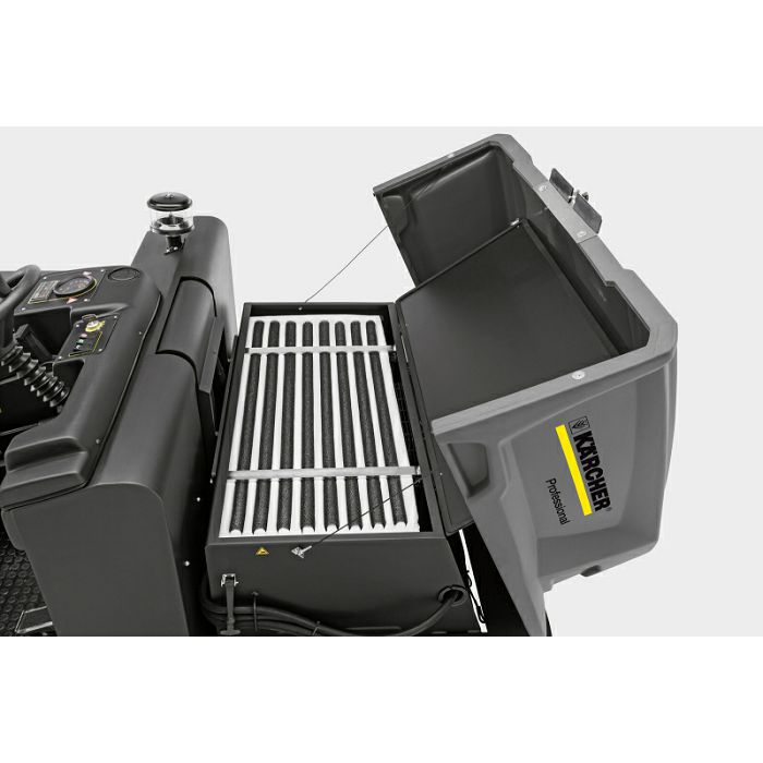 Tehnički podaci Vrsta pogona: dizel Pogon: Četverotaktni motor Proizvođač motora: Yanmar Pogon - snaga (Kw): 15,8 Maks. površinski kapacitet (m2/h): 18000 Radna širina (mm): 1200 Radna širina s jednom bočnom četkom (mm): 1500 Radna širina s dvije bočne četke (mm): 1800 Posuda za smeće (l): 500 Sposobnost savladavanja nagiba (%): 18 Radna brzina (km/h): 12 Površina filtera (m2): 10,5 Težina (sa priborom) (Kg): 1400 Dimenzije (D x Š x V) (mm): 2442 x 1570 x 1640