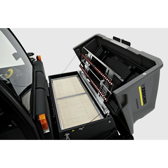 Oprema • Ručno čišćenje filtera • Podesivi glavni valjak za metenje • Servo upravljač • Podešavanje protoka usisavanja • Princip odlagališta • Vožnja naprijed • Vožnja unatrag • Usisavanje • Hidra. ispuštanje na visinu • Za vanjsku upotrebu • Za unutarnju upotrebu • Brojač radnih sati • Funkcija čišćenja s mogućnošću isključivanja • Bočne četke