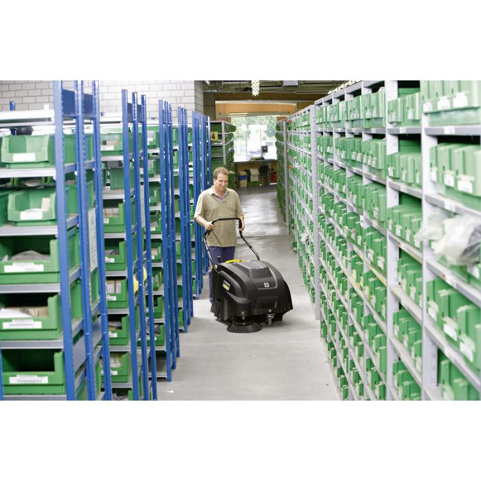 Unutarnji prostori veći od 600 četvornih metara, na primjer u proizvodnim zgradama ili skladištima, savršena su primjena za naš kompaktni i vrlo okretni čistač KM 75/40 W Bp Pack Anniversary Edition sa standardnim baterijama i elektronički kontroliranim ugrađenim punjačem. Sustav metenja s pričvrstivom bočnom četkom, podešavanjem površine metenja i glavnim valjkom za metenje, koji se može zamijeniti bez alata, osigurava temeljite i brze rezultate čišćenja na svim vrstama tvrdih podova - s opcionalnim kompletom za metenje tepiha, također i na tekstilnim podovima. Zahvaljujući učinkovitoj interakciji snažnog usisavanja prašine i mehaničkog čišćenja filtera, čistač radi gotovo bez prašine i vrlo je tih. Koncept rada EASY Operation, pomični spremnik za otpad od 40 litara s kolicima, integrirani pogon metenja s beskonačno podesivom brzinom metenja i mnogi drugi sofisticirani detalji osiguravaju maksimalnu udobnost korisnika i time omogućuju korištenje bez umora dulje vrijeme.