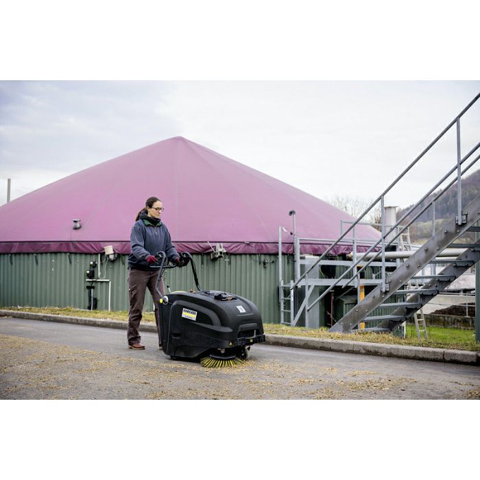 Pokretan benzinskim motorom s niskim emisijama i beskonačno podesivom brzinom metenja: kompaktni i okretni KM 75/40 WG Anniversary Edition Kärcher vanjski stroj za metenje.