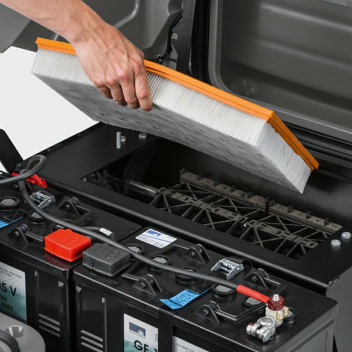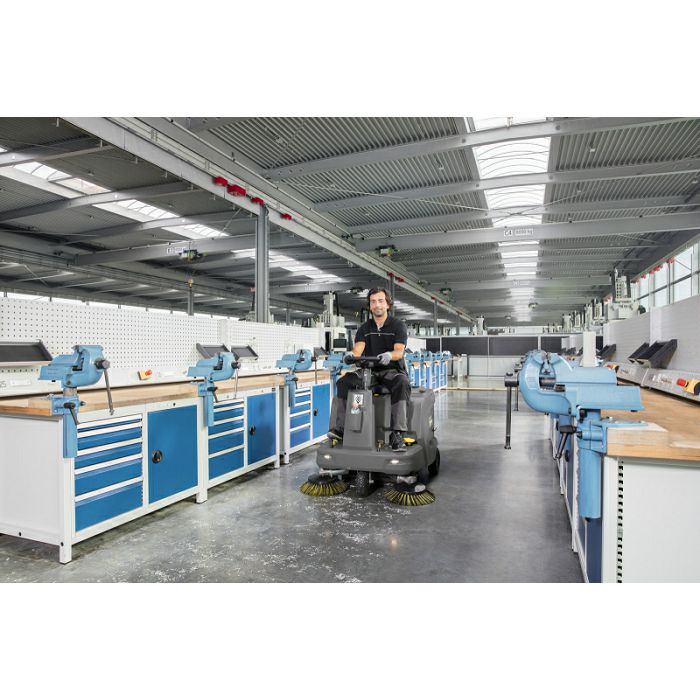 Uska i nedostupna područja domena su našeg KM 85/50 R baterijskog usisavača i čistača sa sjedalom. Njegov kompaktni dizajn i velika manevarska sposobnost omogućavaju čišćenje gdje god je prostor mali, gdje su prolazi uski i gdje ima mnogo kutova. Činjenica da ovaj početni model sa svojim efektom velike površine također osvaja vanjska područja dokazuje njegovu svestranost i učinkovitost. Rukovanje i održavanje stroja vrlo su jednostavni. Tako se npr. veliki filter za prašinu koji omogućuje rad bez prašine, praktički čisti s kontrolne točke. Osim toga, pristup komponentama moguć je preko poklopca uređaja koji se široko otvara, a zamjena glavnog valjka za metenje koji ima oscilirajući ležaj moguća je bez upotrebe alata. Uz pomoć jasno vidljivog vanjskog prikaza istrošenosti prepoznat ćete pravi trenutak za zamjenu. Nema potrebe za ugradnjom sustava za metenje, pa će čak i neravno tlo biti pometeno. Bočno pomična metla učinkovito sprječava ozljede, dok joj se brzina kretanja može mijenjati prema potrebi. Također je praktično nositi dodatni pribor za čišćenje zahvaljujući našem integriranom sustavu Home-Base.