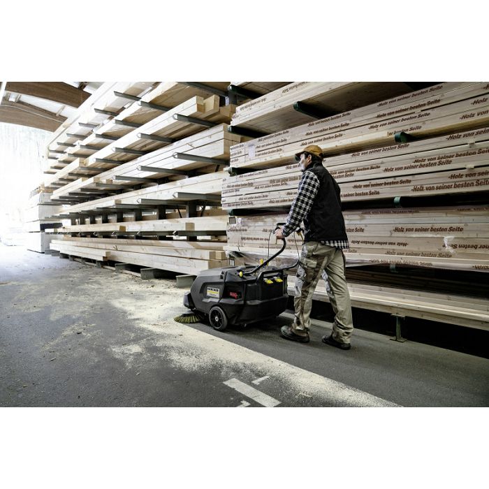 Kompaktno dizajnirana industrijska ručna čistačica KM 85/50 W Bp Pack uvjerava tvornički ugrađenom opremom vrhunske kvalitete. Na primjer, stroj se standardno isporučuje s disk kočnicom, baterijom i pripadajućim punjačem. Veliki ravni naborani filtar s visoko učinkovitim čišćenjem s dvostrukim strugačem omogućuje rad gotovo bez prašine, a oscilirajući valjak za metenje osigurava izvrsne rezultate čišćenja čak i na zahtjevnim terenima i velikim količinama prljavštine. Korisnici će biti zadovoljni vrlo udobnim i intuitivnim upravljanjem pogonom za pomicanje naprijed i natrag jednostavnim pritiskom ili povlačenjem ručke za guranje, kao i promišljenim detaljima kao što je Kärcher Home Base za praktično spremanje dodatnog pribora za čišćenje. Robusni stroj s bočnim čistačem s automatskim uklanjanjem prepreka i dvostrukim okvirom izvrsno je rješenje za zahtjevne primjene. Također, jednostavna zamjena glavnog valjka za metenje i filtra bez alata i visoka učinkovitost čišćenja do 4725 m2/h (s dodatnom lijevom bočnom metlom) ispunjavaju stroge zahtjeve u industrijskim okruženjima.