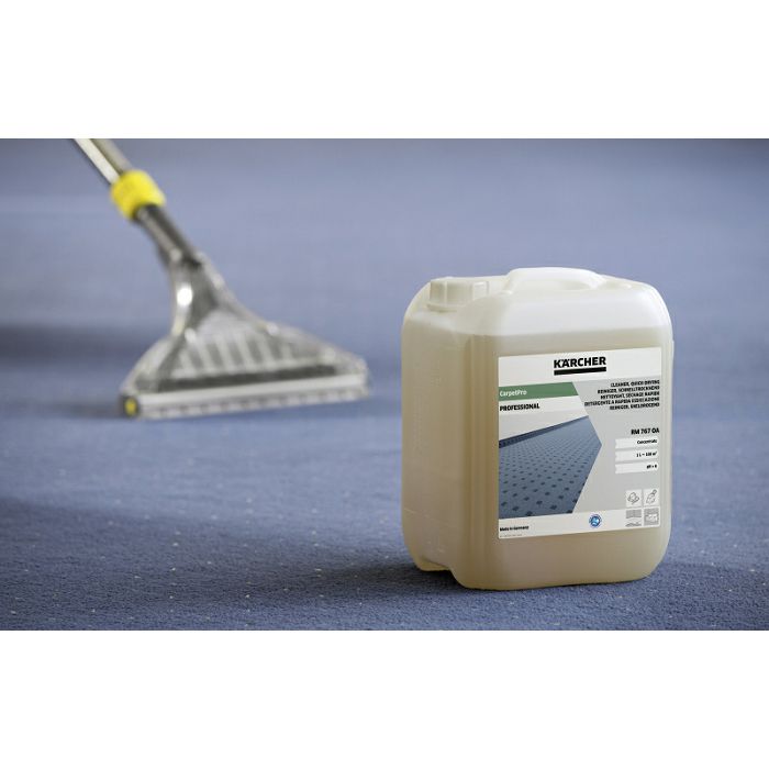 Sredstvo za čišćenje tepiha RM 767, 10 l Tekuće, brzosušeće dubinsko sredstvo za čišćenje tekstilnih podnih obloga, tapeciranog namještaja ili automobilskih sjedala. Uklanja neugodne mirise i poboljšava higijenu.
