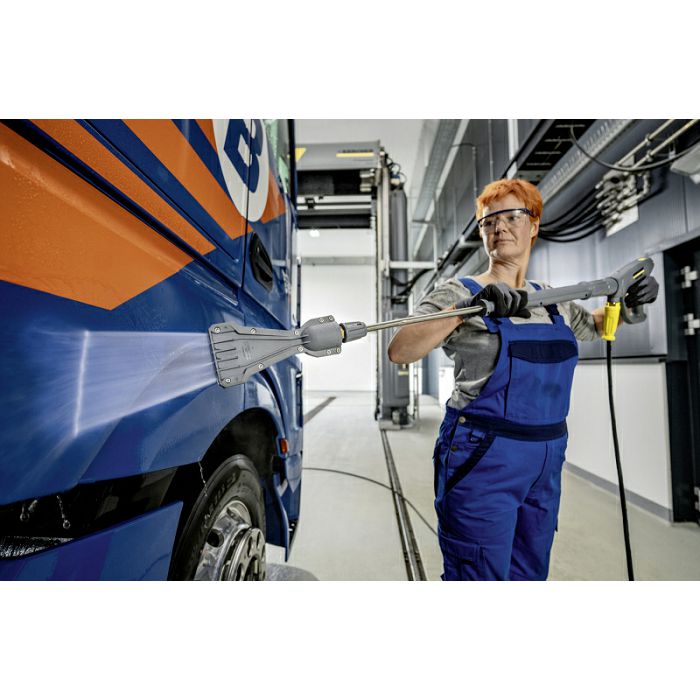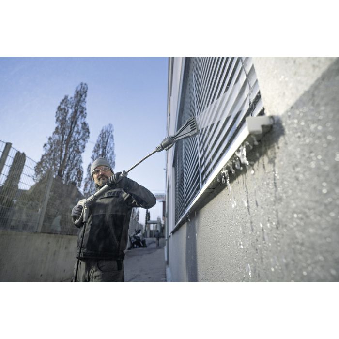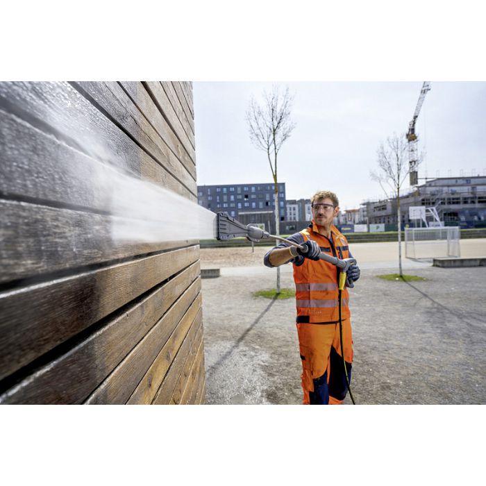 eco!Booster impresionira svojim površinskim učinkom koji je 50% bolji od Kärcher moćne mlaznice. Povećana širina mlaza donosi veću učinkovitost, što dovodi do manje potrošnje energije i vode. Osjetljive površine kao što su ožbukane fasade ili drveni zidovi nježno se čiste. Booster je prikladan za Kärcher visokotlačne čistače s hladnom i toplom vodom (do 85 °C), kompatibilan je s EASY!Lock sučeljem i ima veličinu mlaznice 033. Revolucionarni koncept mlaznice pumpa zrak i usmjerava protok vode. Činjenica da se prvorazredni rezultati čišćenja postižu u kraćem vremenu posebno je važna u sektorima kao što su građevinarstvo ili čišćenje vozila.