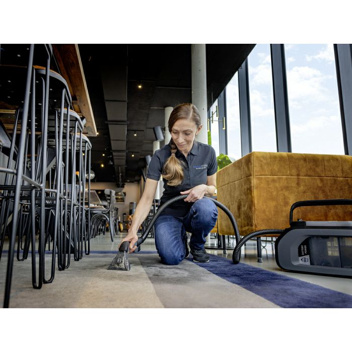Robustan, izdržljiv i snažan s bežičnom fleksibilnošću: naš bežični dubinski čistač Puzzi 2/1 Bp. Ovaj prijenosni, baterijski dubinski čistač može se koristiti i za čišćenje mjesta i uklanjanje mrlja, što olakšava uklanjanje svježih ili osušenih mrlja na tekstilima poput tapeciranih stolica, sofa, autosjedalica i još mnogo toga. Puzzi 2/1 Bp uklanja sve mrlje u tren oka zahvaljujući svojoj izvanrednoj usisnoj snazi, koja također osigurava brzo sušenje. Zahvaljujući kompaktnom dizajnu, maloj težini i ergonomskoj ručki, uređaj se lako nosi jednom rukom. Za najbolje rezultate uklanjanja mrlja, otopina za čišćenje se pod tlakom raspršuje duboko u tekstilna vlakna prije nego što se ponovno usisa zajedno s olabavljenom prljavštinom. Standardna isporuka: mlaznica za tapecirani namještaj, crijevo za prskanje/usisavanje, odvojene posude za svježu i prljavu vodu i integrirano spremište za pribor. Prilikom narudžbe ove verzije stroja, imajte na umu da se snažna 36 V Kärcher Battery Power+ baterija i odgovarajući brzi punjač moraju naručiti zasebno.