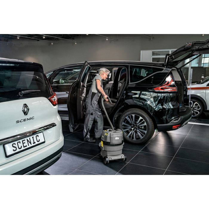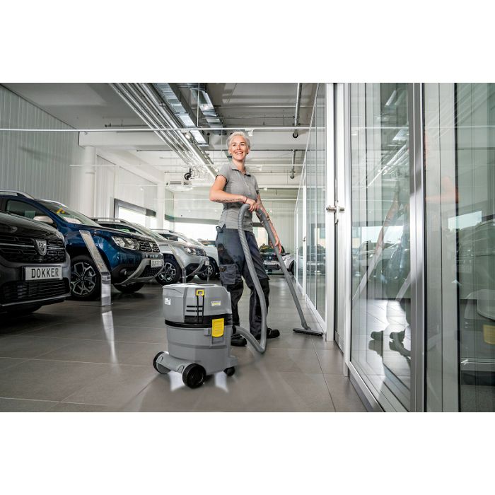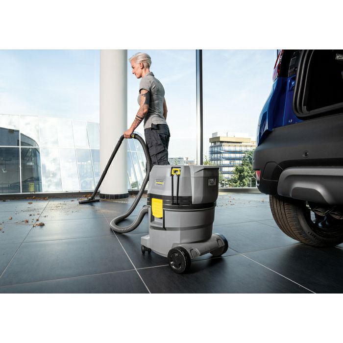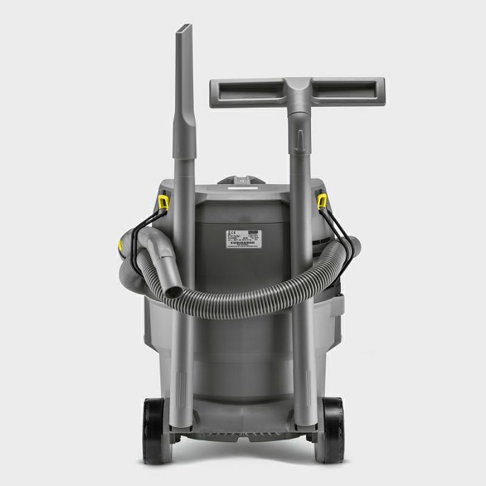 Razvijen za usisavanje tekućina, grubih nečistoća i fine prašine, naš bežični mokro/suhi usisavač NT 22/1 Ap Bp impresionira svojom velikom snagom usisavanja gdje god nema dostupnog vanjskog napajanja. Uređaj je dizajniran za rad sa snažnim Kärcher Battery Power+ baterijama koje se ne isporučuju kao odgovarajući punjač. Naše baterije omogućuju posebno dug rad usisavača i učinkovito su zaštićene od vanjskih utjecaja u uređaju. Kompaktne dimenzije i mala težina modela NT 22/1 Ap Bp čine ga lakšim za nošenje i skladištenje te omogućuju korištenje čak iu skučenim prostorima iu područjima gdje boravi veliki broj ljudi. Uz to, ovaj svestrani uređaj opremljen je ravnim naboranim filtrom koji štedi prostor i elektroničkim prekidom dovoda vode. Poseban ravni dizajn glave uređaja također omogućuje spremanje alata ili kutija.