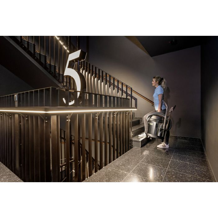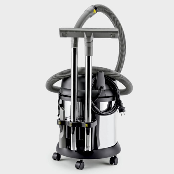 NT 27/1 Me je snažan usisavač za mokro/suho usisavanje za profesionalnu upotrebu. Iznimno je kompaktan i opremljen spremnikom od nehrđajućeg čelika.