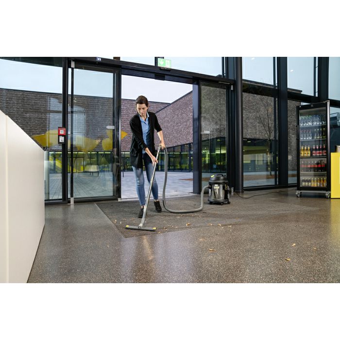 NT 27/1 Me Advanced je kompaktan, okretan i jednostavan za korištenje mokro/suhi usisavač za svestranu industrijsku upotrebu. NT 27/1 Me Advanced postiže svoju visoku usisnu snagu uz pomoć snažne usisne turbine. Opremljen je patronskim filterom čija je površina dodatno povećana. Mehanički plovak koji se aktivira kada se postigne maksimalna razina u posudi osigurava dug vijek trajanja i siguran rad. Praktični Clip sustav za brzu izmjenu ili pričvršćivanje pribora olakšava rukovanje uređajem. 5 vodećih kotačića osigurava ravnomjerno kretanje, upravljivost i stabilan položaj. Osim toga, NT 27/1 Me Advanced ima i praktičan prostor za pohranu na glavi ventilatora. Dodatna prednost NT 27/1 Me Advanced je držač pribora i kuka za kabel. Ergonomski oblikovana ručka s držačem usisnog crijeva osigurava jednostavan i udoban transport uređaja, uključujući pribor. NT 27/1 Me Advanced također ima odbojnik sa svih strana, koji ne štiti samo sam uređaj, već i zidove, druge uređaje i predmete od oštećenja. Kućište od nehrđajućeg čelika, otporno na koroziju, kiseline i lužine, također osigurava dug vijek trajanja industrijskog usisavača.