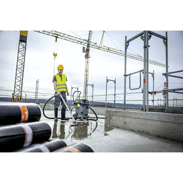 Na gradilištima ili u industrijskim pogonima, Kärcher usisavač za mokro/suho usisavanje NT 50/1 K posebno je dizajniran za brzo uklanjanje velikih količina vode. Zahvaljujući snažnoj pumpi za uklanjanje, može ispumpati više od 300 litara prljave vode u minuti, uključujući grubu prljavštinu do veličine čestica od 20 milimetara. Standardna Geka spojnica osigurava kompatibilnost s ovim široko korištenim sustavom spajanja crijeva za vodu. Turbina i pumpa za odvod zaštićene su od oštećenja ili začepljenja učinkovitim filterima za grubu prljavštinu koji sprječavaju usisavanje malih dijelova, kamenja, lišća ili ostataka građevinskog materijala. Metalni upravljački valjci/kotači na robusnom spremniku od 50 litara i beskonačno podesiva ručka elementa za guranje osiguravaju visoku prenosivost i jednostavan transport usisavača NT 50/1 K od vozila do mjesta upotrebe i natrag.