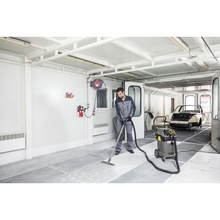 Veliki volumen spremnika od 50 litara s uvlačivom ručkom s mogućnošću montaže i ispusnim crijevom čini naš mokro/suhi usisavač NT 50/1 Tact Te H prikladnim za sigurno uklanjanje prašine koja je opasna za zdravlje i kancerogena, posebno u industrijskim područjima. Uređaj je testiran i registriran za sve prašine klase H, bez iznimke, uključujući azbestnu prašinu, te time doprinosi pouzdanoj zaštiti zdravlja korisnika i drugih osoba u blizini. Uz pomoć nove dvostruke filtracije sa sigurnosnom filter vrećicom, ne usisava se samo opasna prašina, već i velike količine manje opasne prašine, koja se može usisati izravno u spremnik. Koristi se dodatno poboljšani visokoučinkoviti Tact sustav. Osim toga, NT 50/1 Tact Te H ima utičnicu za uređaje s automatskim pogonom i kompletan antistatički sustav, uključujući pribor.